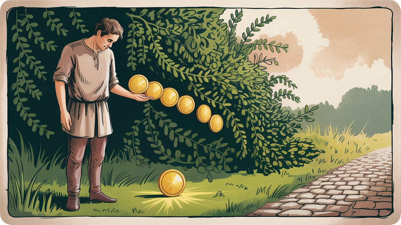 En el Rider-Waite, el 7 de Oros nos muestra a un campesino cansado apoyado en su azada, mirando un arbusto donde crecen 6 monedas, mientras otra yace a sus pies. Esa cara de “¿en serio trabajé tanto para esto?” es la clave de la carta.